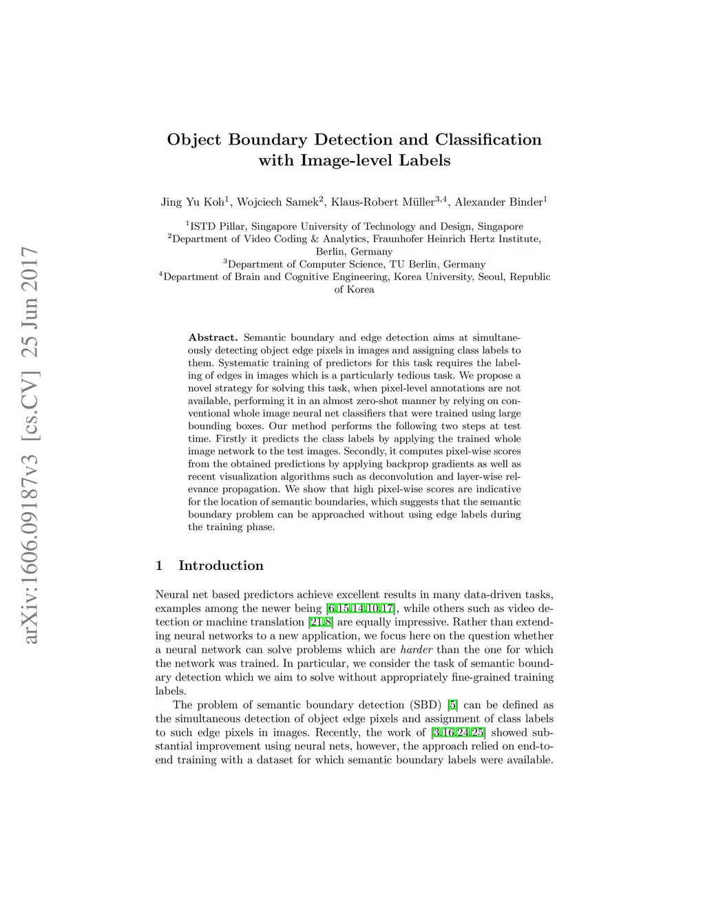 Object Boundary Detection and Classification with Image-level Labels