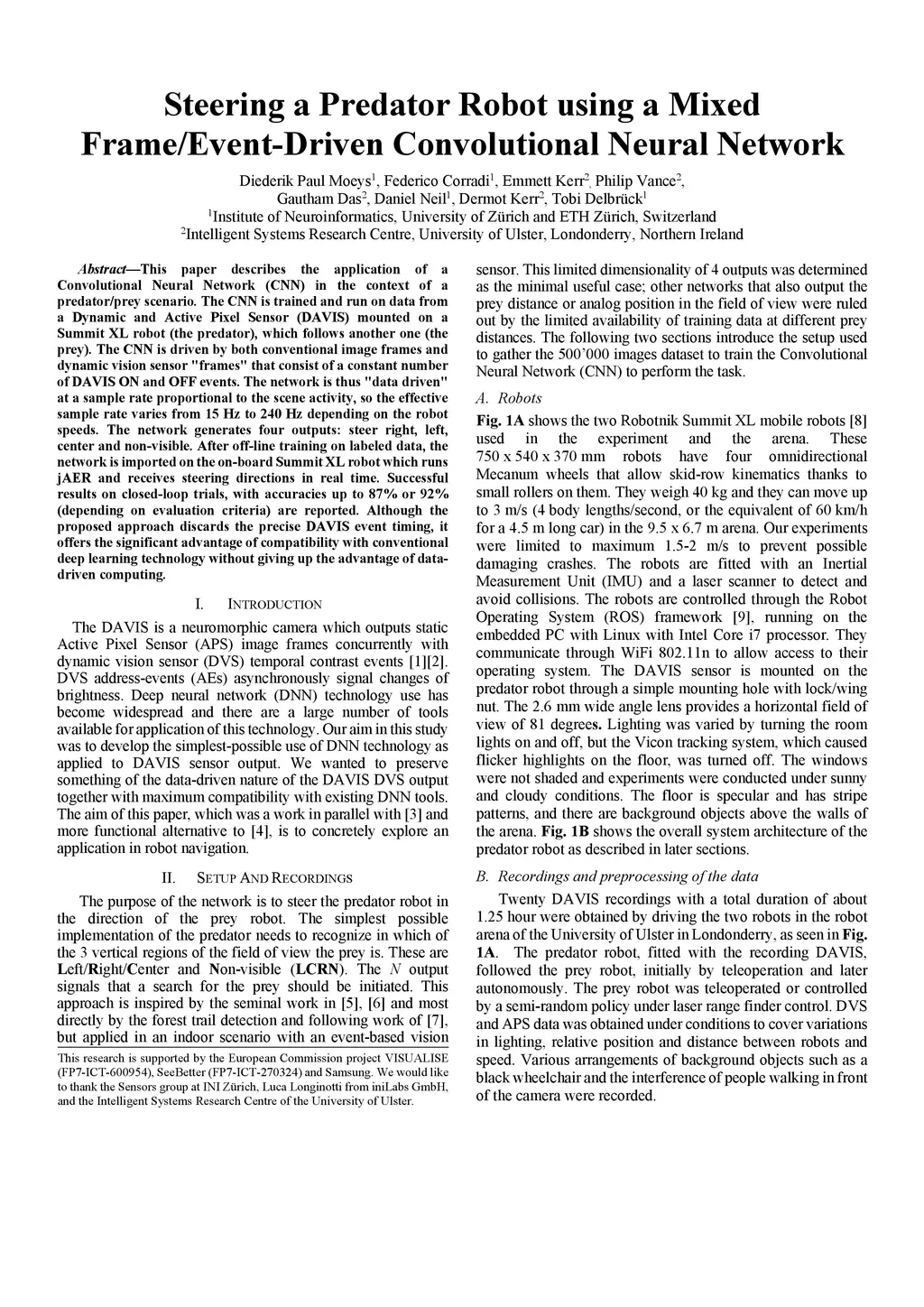 Steering a Predator Robot using a Mixed Frame/Event-Driven Convolutional