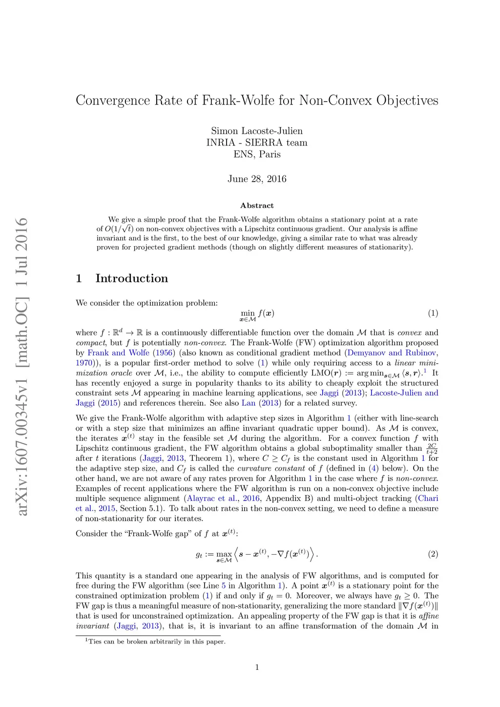 Convergence Rate of Frank-Wolfe for Non-Convex Objectives