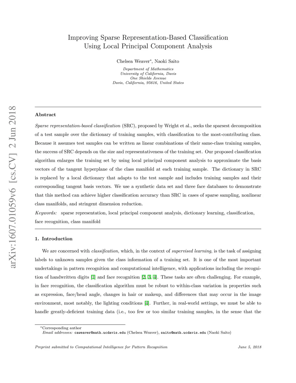 Improving Sparse Representation-Based Classification Using Local