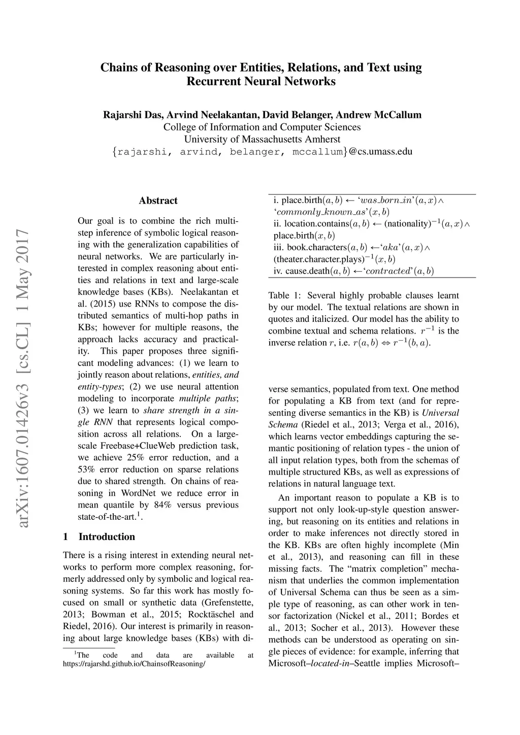 Chains of Reasoning over Entities, Relations, and Text using Recurrent
