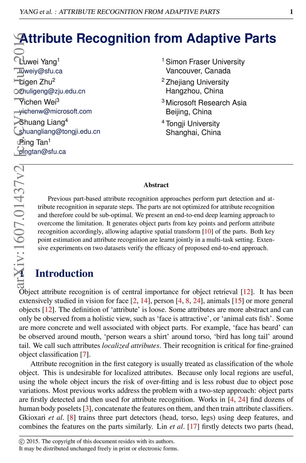 Previous part-based attribute recognition approaches perform part detection and attribute recognition in separate steps. The parts are not optimized for attribute recognition and therefore could be sub-optimal. We present an end-to-end deep learning approach to overcome the limitation. It generates object parts from key points and perform attribute recognition accordingly, allowing adaptive spatial transform of the parts. Both key point estimation and attribute recognition are learnt jointly in a multi-task setting. Extensive experiments on two datasets verify the efficacy of proposed end-to-end approach.