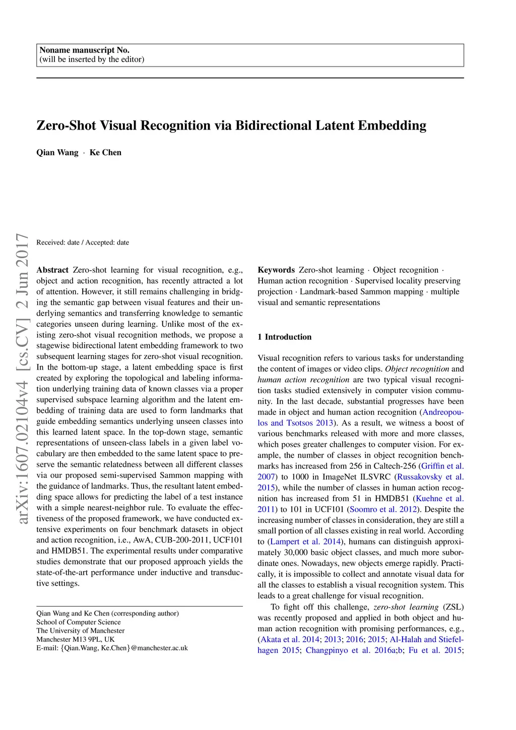 Zero-Shot Visual Recognition via Bidirectional Latent Embedding