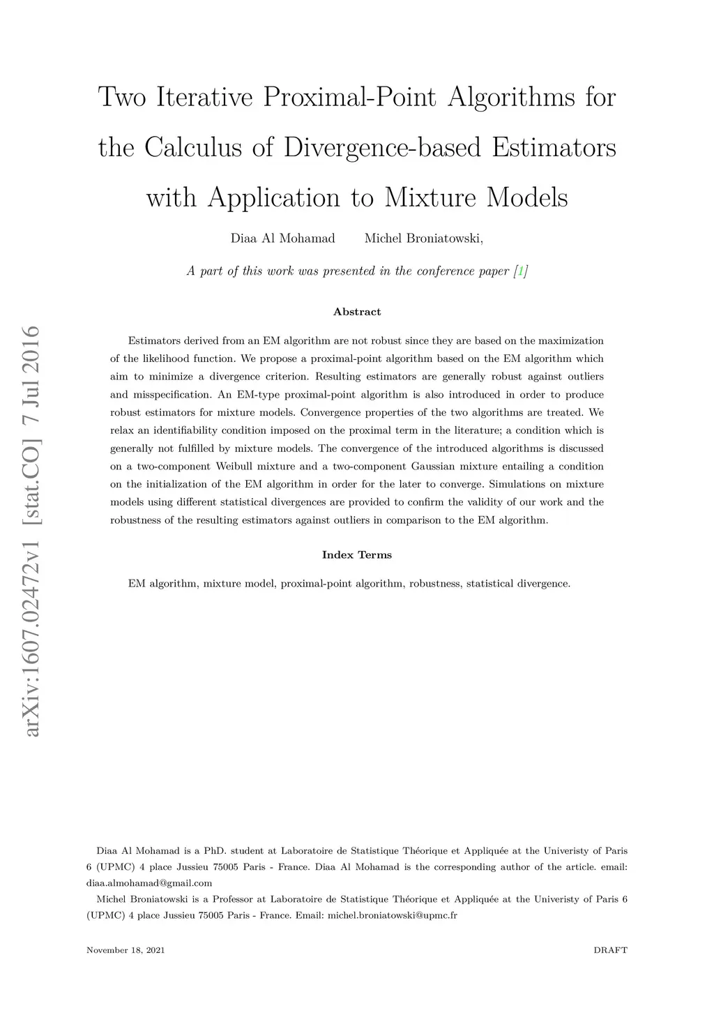 Divergence-based Estimators with Application to Mixture Models