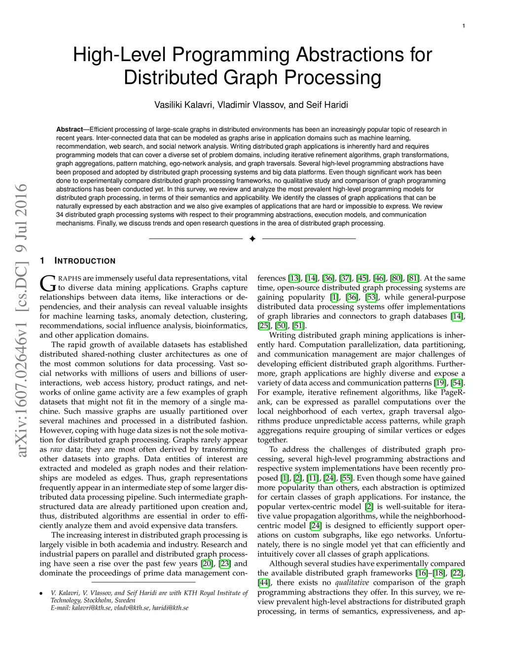 High-Level Programming Abstractions for Distributed Graph Processing