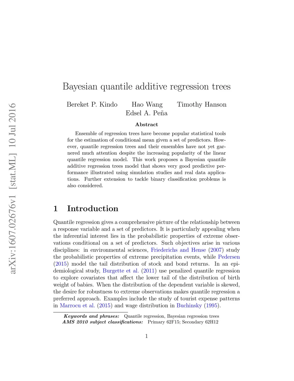 Bayesian quantile additive regression trees