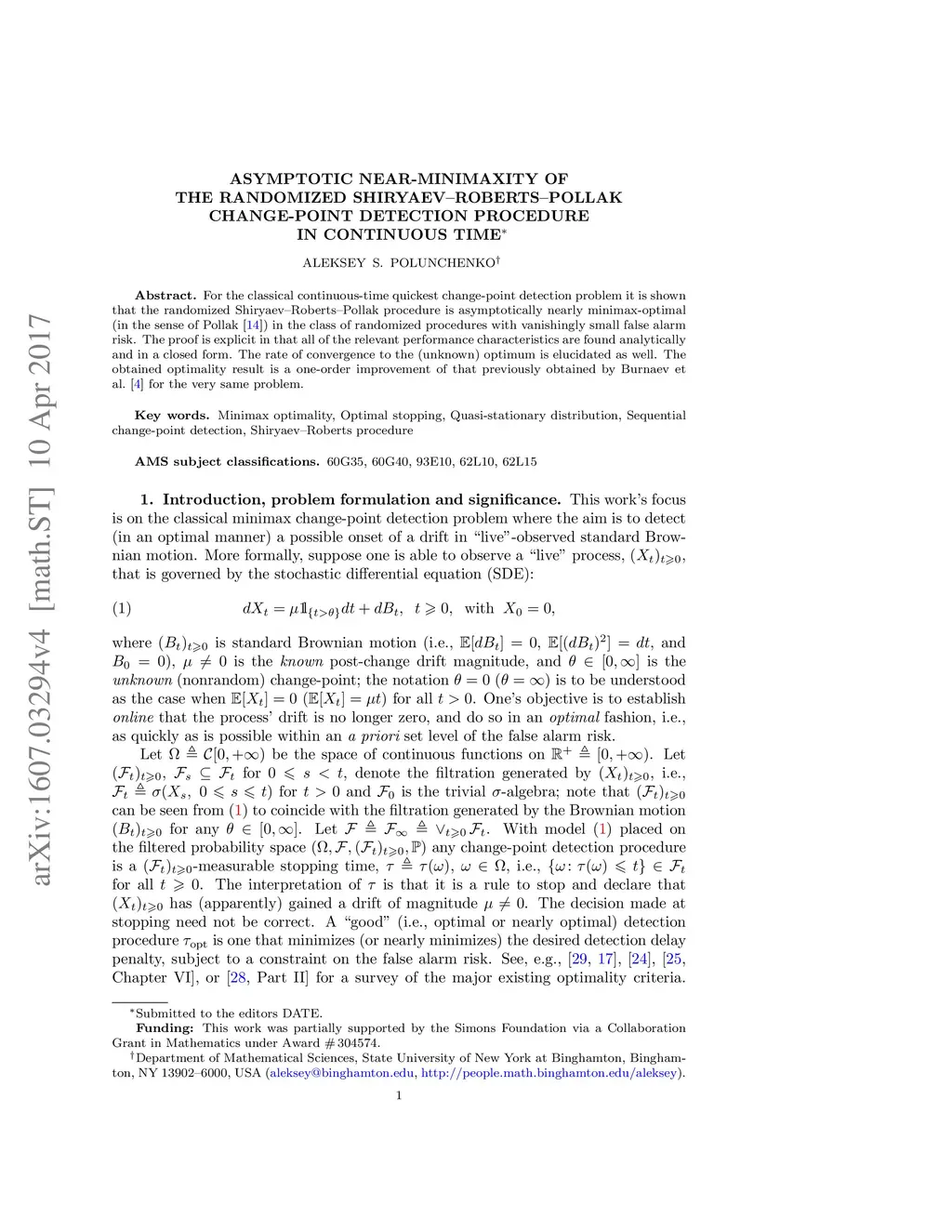 For the classical continuous-time quickest change-point detection problem it is shown that the randomized Shiryaev-Roberts-Pollak procedure is asymptotically nearly minimax-optimal (in the sense of Pollak 1985) in the class of randomized procedures with vanishingly small false alarm risk. The proof is explicit in that all of the relevant performance characteristics are found analytically and in a closed form. The rate of convergence to the (unknown) optimum is elucidated as well. The obtained optimality result is a one-order improvement of that previously obtained by Burnaev et al. (2009) for the very same problem.