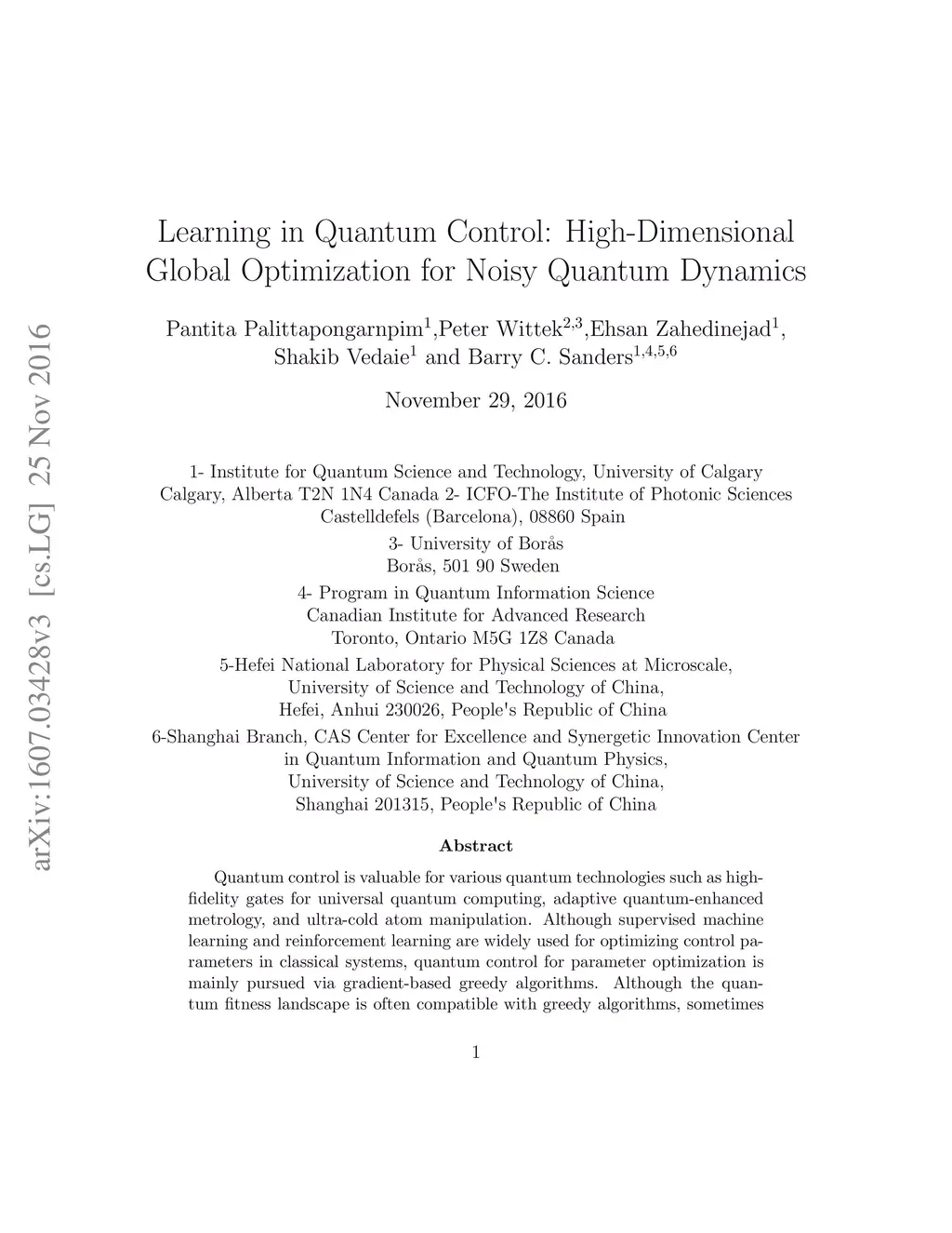 Learning in Quantum Control: High-Dimensional Global Optimization for