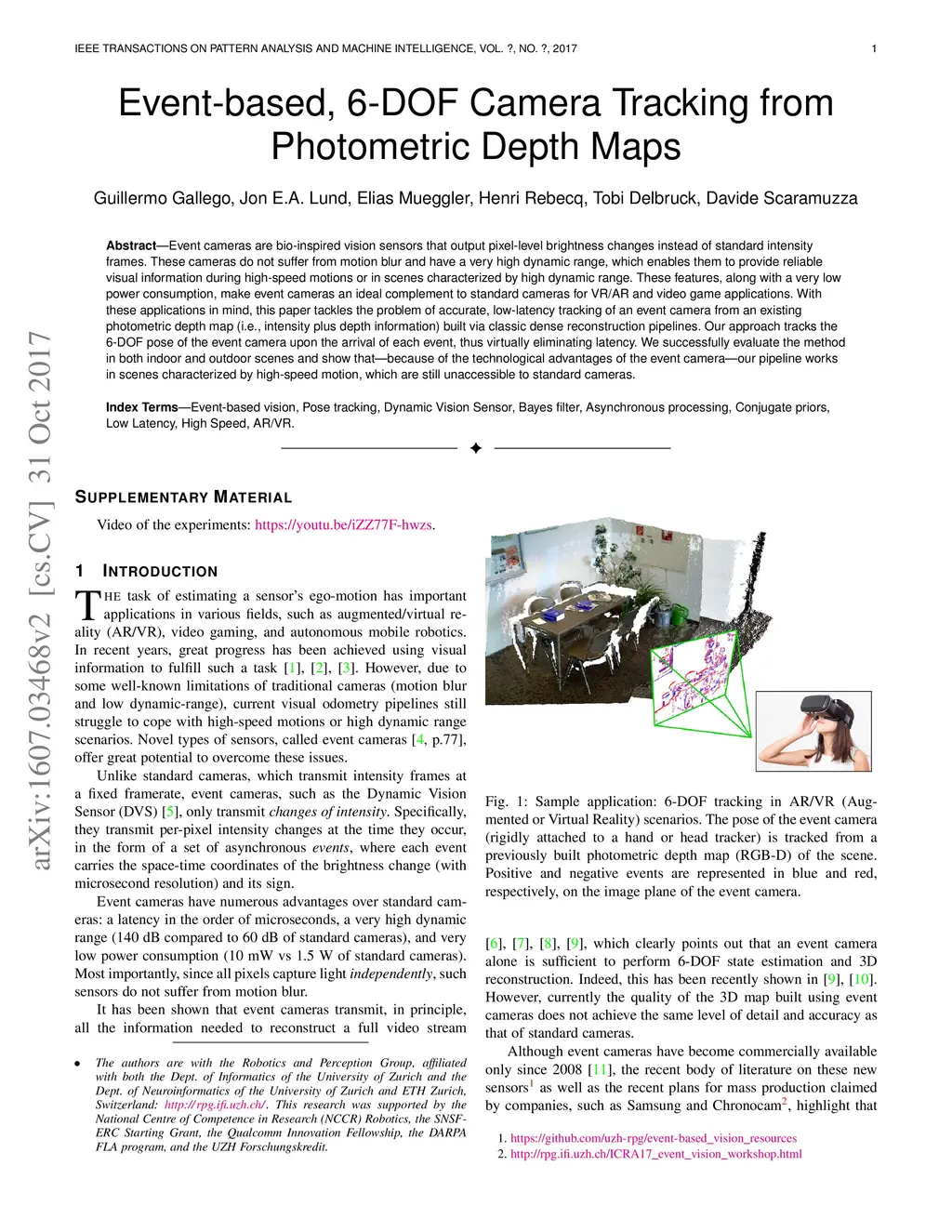 Event-based, 6-DOF Camera Tracking from Photometric Depth Maps