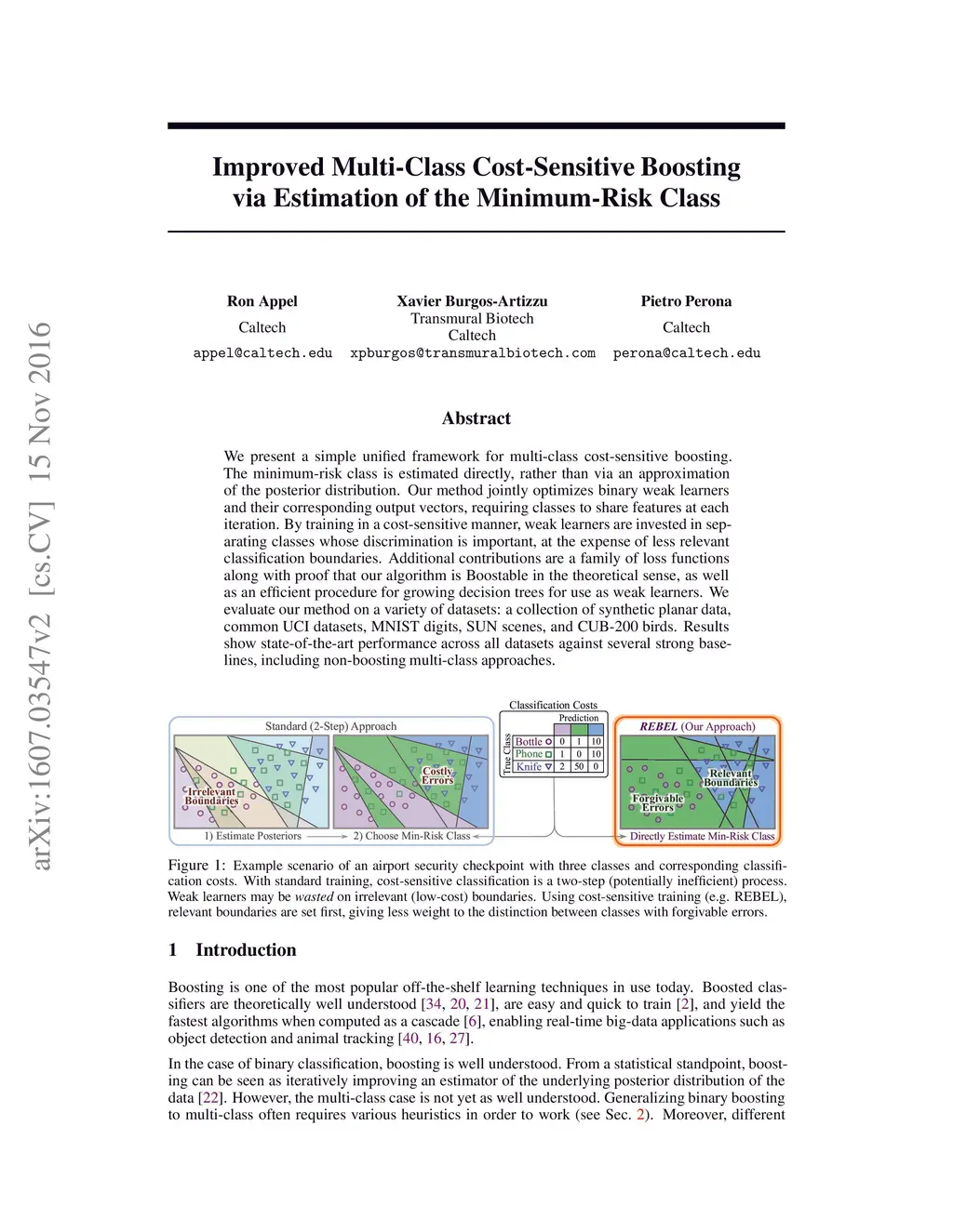 We present a simple unified framework for multi-class cost-sensitive boosting. The minimum-risk class is estimated directly, rather than via an approximation of the posterior distribution. Our method jointly optimizes binary weak learners and their corresponding output vectors, requiring classes to share features at each iteration. By training in a cost-sensitive manner, weak learners are invested in separating classes whose discrimination is important, at the expense of less relevant classification boundaries. Additional contributions are a family of loss functions along with proof that our algorithm is Boostable in the theoretical sense, as well as an efficient procedure for growing decision trees for use as weak learners. We evaluate our method on a variety of datasets: a collection of synthetic planar data, common UCI datasets, MNIST digits, SUN scenes, and CUB-200 birds. Results show state-of-the-art performance across all datasets against several strong baselines, including non-boosting multi-class approaches.