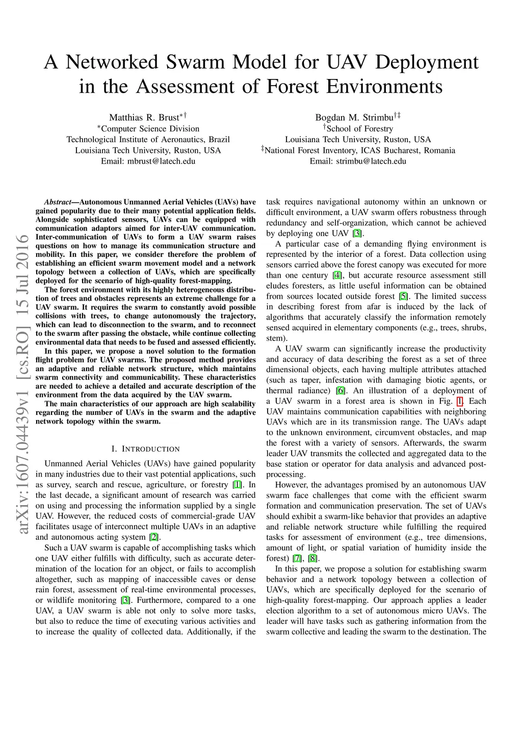 A Networked Swarm Model for UAV Deployment in the Assessment of Forest
