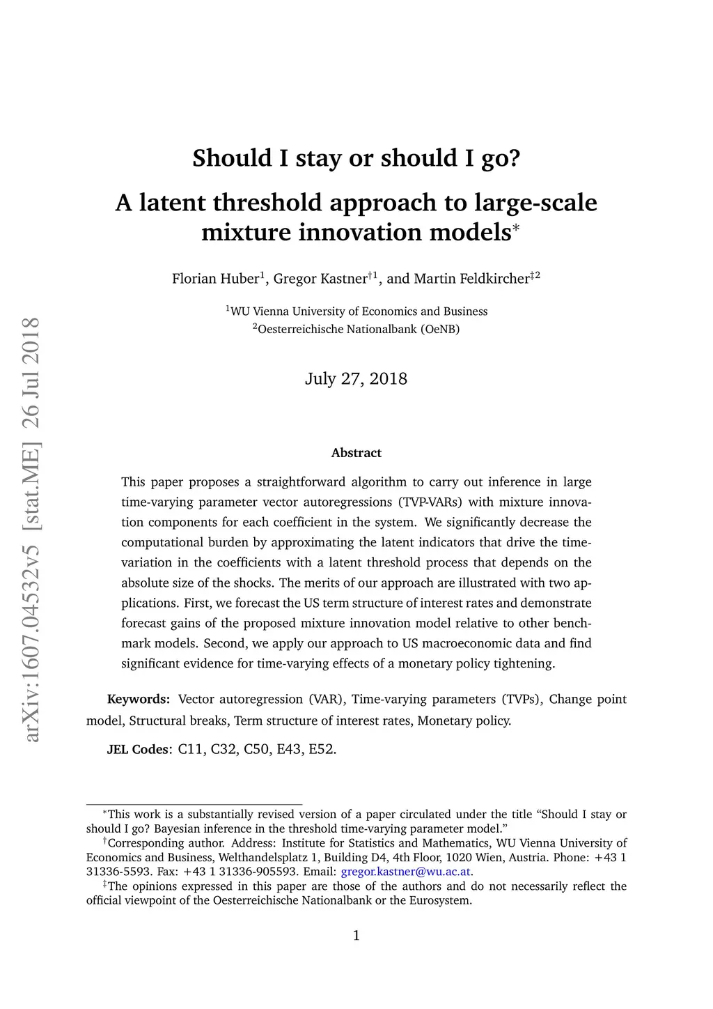 This paper proposes a straightforward algorithm to carry out inference in large time-varying parameter vector autoregressions (TVP-VARs) with mixture innovation components for each coefficient in the system. We significantly decrease the computational burden by approximating the latent indicators that drive the time-variation in the coefficients with a latent threshold process that depends on the absolute size of the shocks. The merits of our approach are illustrated with two applications. First, we forecast the US term structure of interest rates and demonstrate forecast gains of the proposed mixture innovation model relative to other benchmark models. Second, we apply our approach to US macroeconomic data and find significant evidence for time-varying effects of a monetary policy tightening.