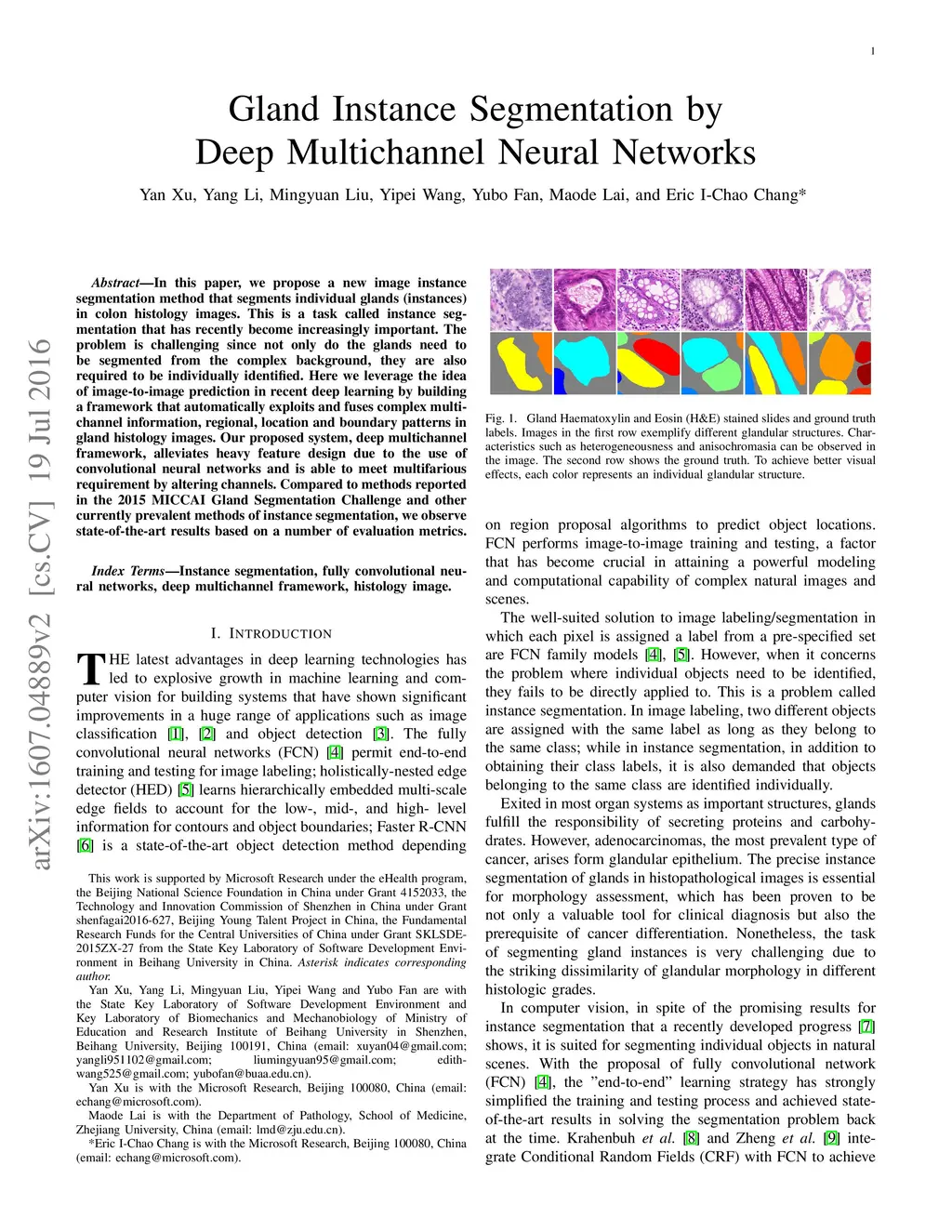 Gland Instance Segmentation by Deep Multichannel Neural Networks