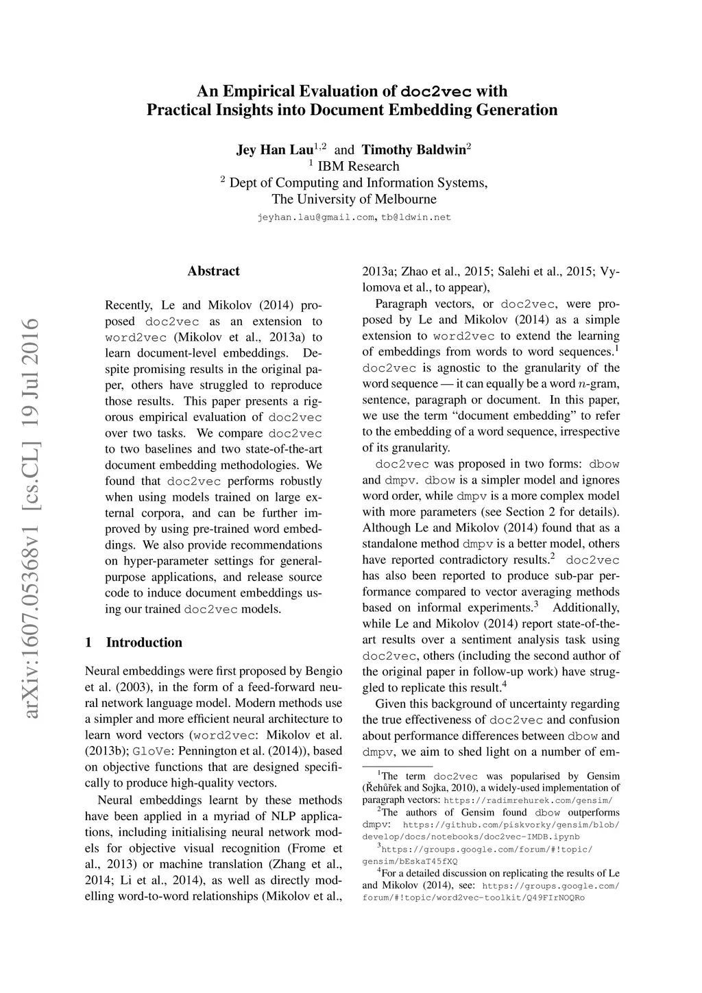 An Empirical Evaluation of doc2vec with Practical Insights into Document