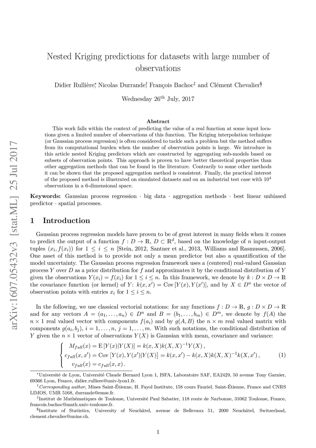 This work falls within the context of predicting the value of a real function at some input locations given a limited number of observations of this function. The Kriging interpolation technique (or Gaussian process regression) is often considered to tackle such a problem but the method suffers from its computational burden when the number of observation points is large. We introduce in this article nested Kriging predictors which are constructed by aggregating sub-models based on subsets of observation points. This approach is proven to have better theoretical properties than other aggregation methods that can be found in the literature. Contrarily to some other methods it can be shown that the proposed aggregation method is consistent. Finally, the practical interest of the proposed method is illustrated on simulated datasets and on an industrial test case with observations in a 6-dimensional space.
