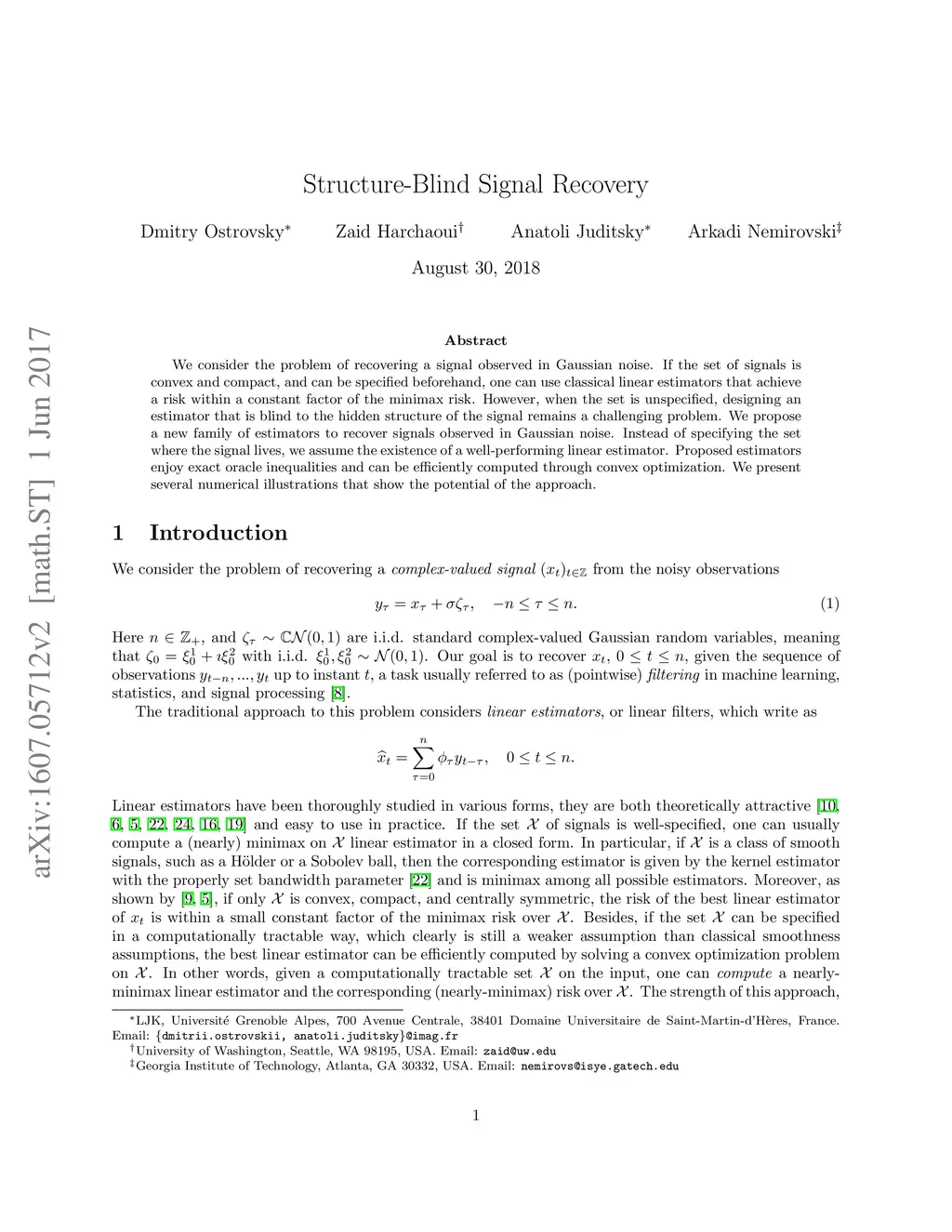 We consider the problem of recovering a signal observed in Gaussian noise. If the set of signals is convex and compact, and can be specified beforehand, one can use classical linear estimators that achieve a risk within a constant factor of the minimax risk. However, when the set is unspecified, designing an estimator that is blind to the hidden structure of the signal remains a challenging problem. We propose a new family of estimators to recover signals observed in Gaussian noise. Instead of specifying the set where the signal lives, we assume the existence of a well-performing linear estimator. Proposed estimators enjoy exact oracle inequalities and can be efficiently computed through convex optimization. We present several numerical illustrations that show the potential of the approach.