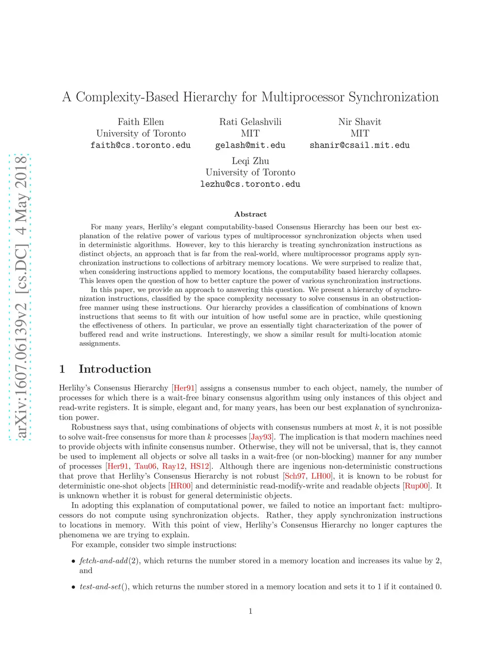 For many years, Herlihy's elegant computability based Consensus Hierarchy has been our best explanation of the relative power of various types of multiprocessor synchronization objects when used in deterministic algorithms. However, key to this hierarchy is treating synchronization instructions as distinct objects, an approach that is far from the real-world, where multiprocessor programs apply synchronization instructions to collections of arbitrary memory locations. We were surprised to realize that, when considering instructions applied to memory locations, the computability based hierarchy collapses. This leaves open the question of how to better capture the power of various synchronization instructions. In this paper, we provide an approach to answering this question. We present a hierarchy of synchronization instructions, classified by their space complexity in solving obstruction-free consensus. Our hierarchy provides a classification of combinations of known instructions that seems to fit with our intuition of how useful some are in practice, while questioning the effectiveness of others. We prove an essentially tight characterization of the power of buffered read and write instructions.Interestingly, we show a similar result for multi-location atomic assignments.