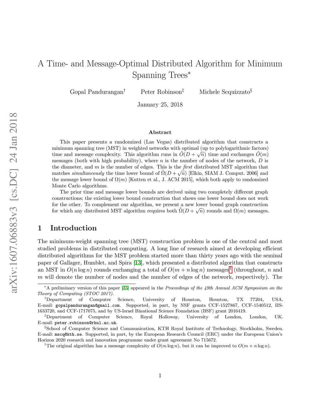 A Time- and Message-Optimal Distributed Algorithm for Minimum Spanning