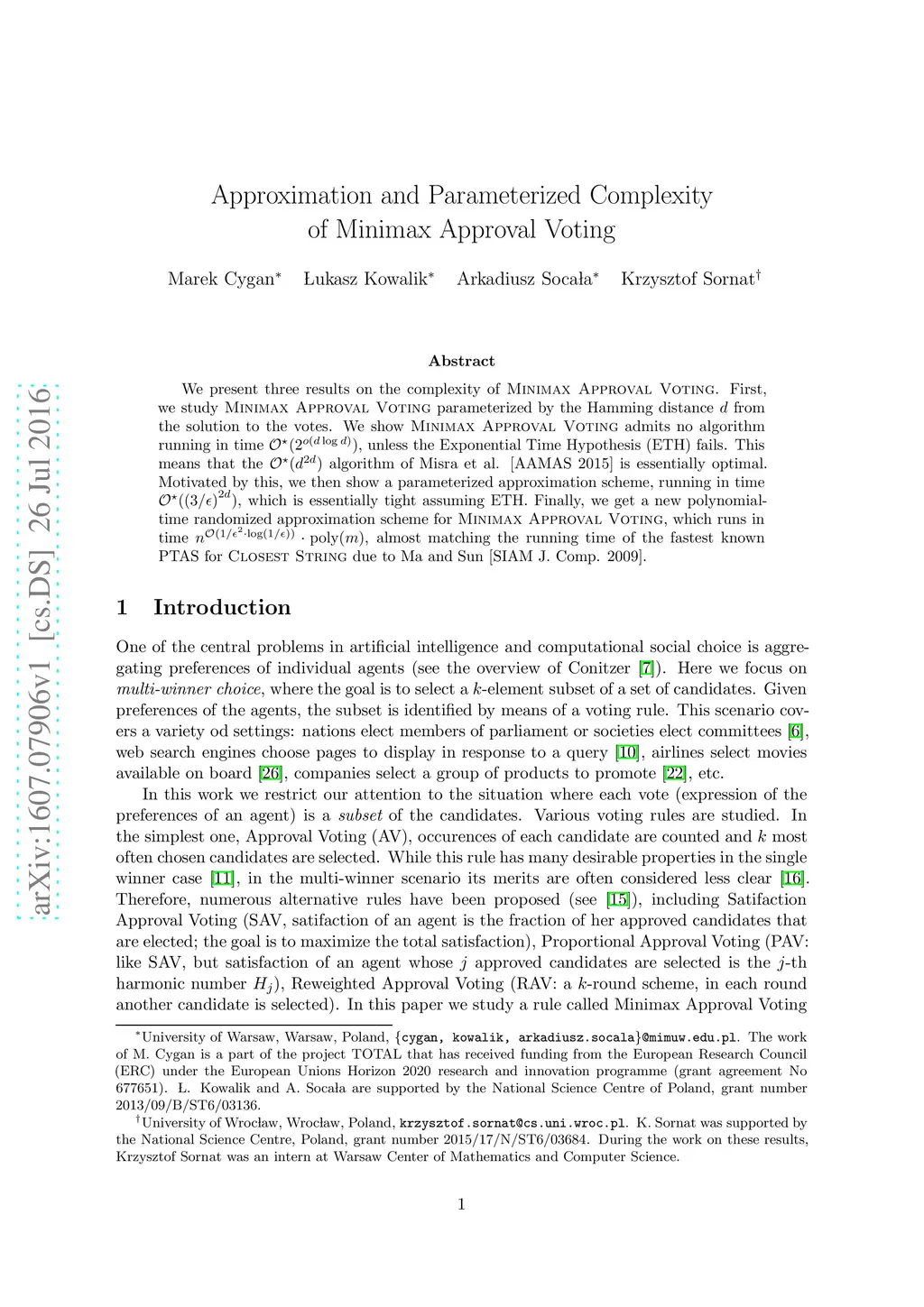 Approximation and Parameterized Complexity of Minimax Approval Voting