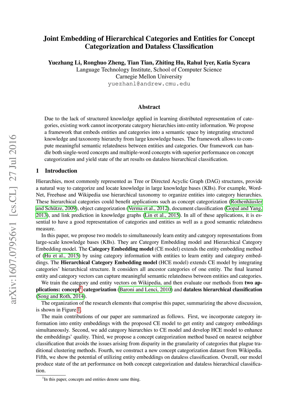 Joint Embedding of Hierarchical Categories and Entities for Concept