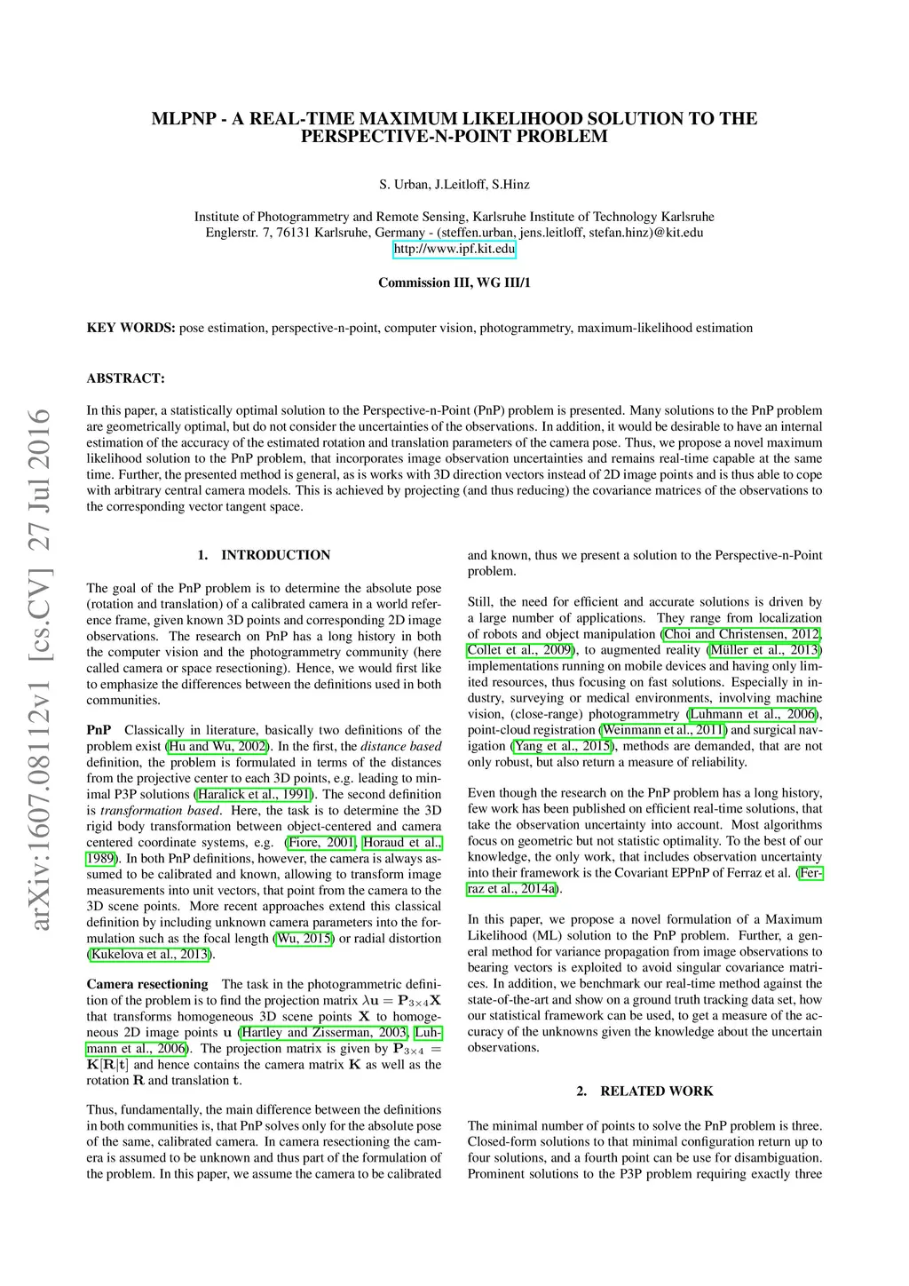 MLPnP - A Real-Time Maximum Likelihood Solution to the