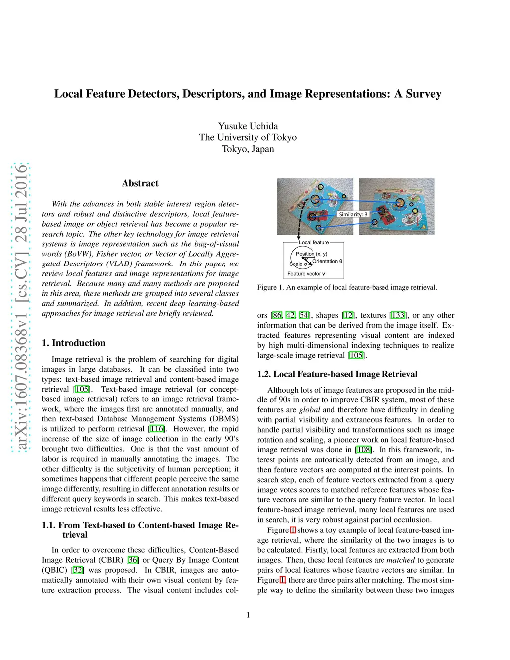 Local Feature Detectors, Descriptors, and Image Representations: A