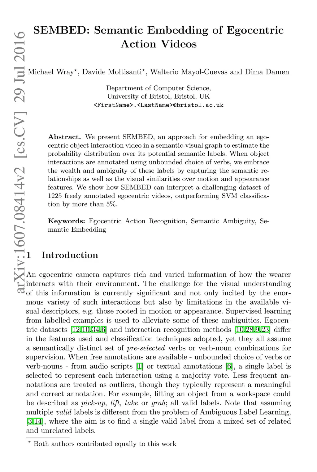 SEMBED: Semantic Embedding of Egocentric Action Videos