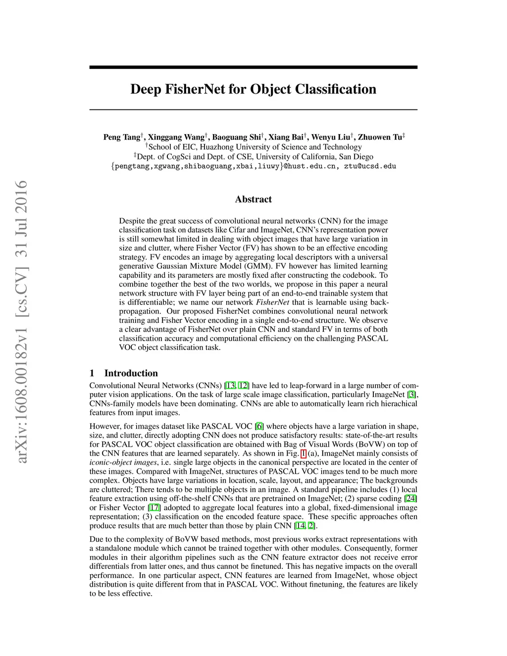 Deep FisherNet for Object Classification