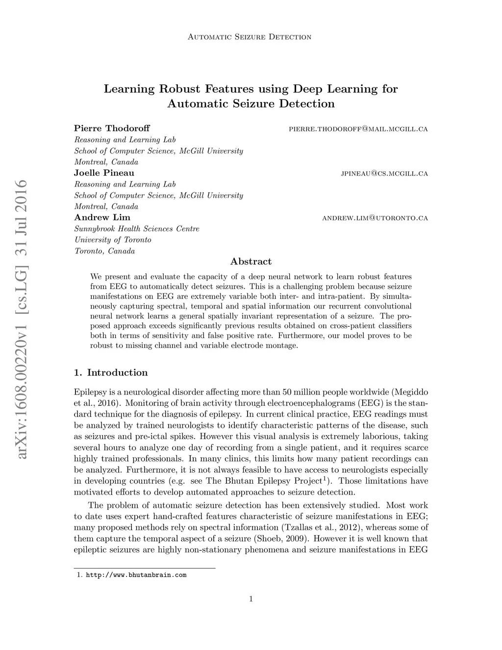 Learning Robust Features using Deep Learning for Automatic Seizure