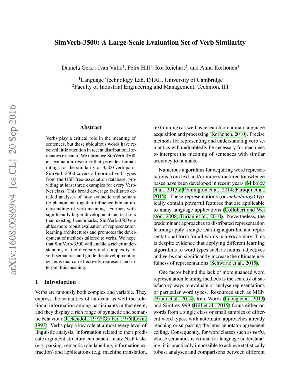 SimVerb-3500: A Large-Scale Evaluation Set of Verb Similarity