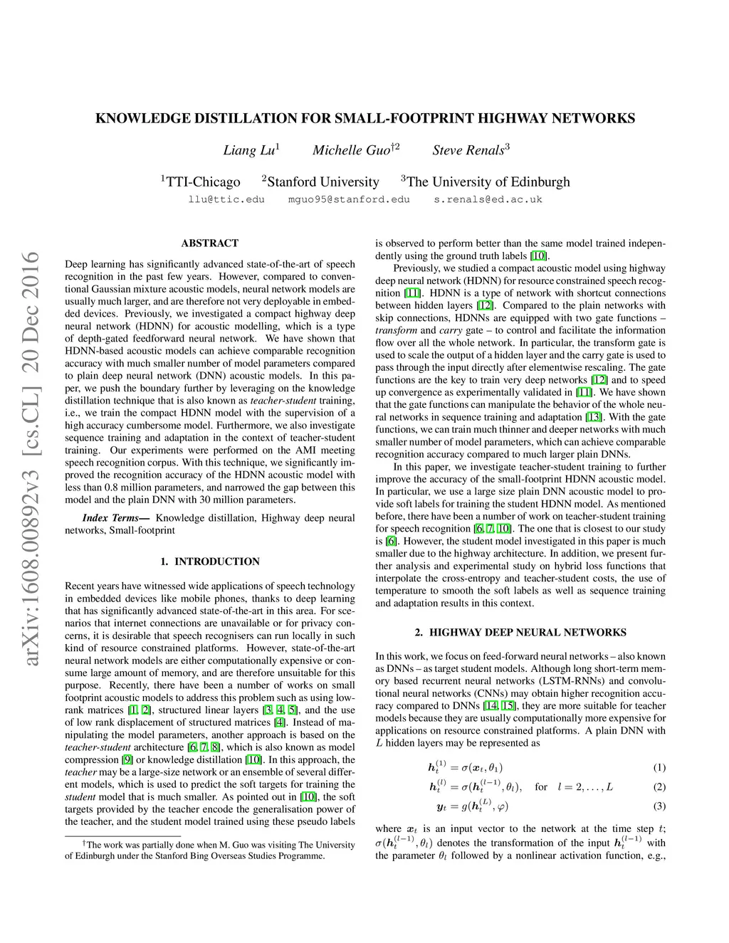 Knowledge Distillation for Small-footprint Highway Networks