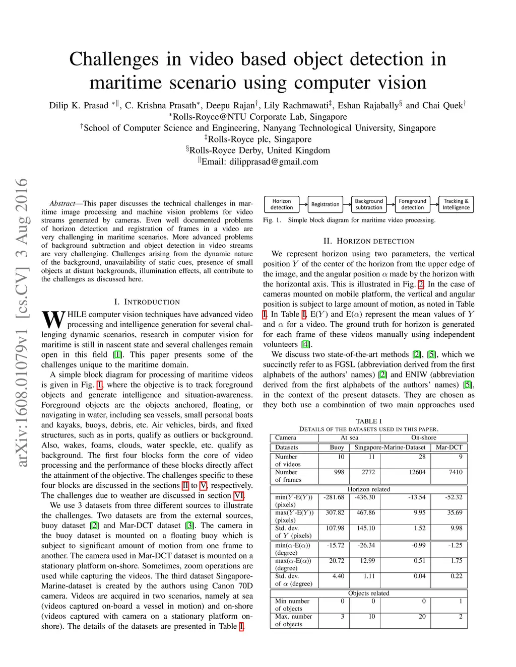 Challenges in video based object detection in maritime scenario using