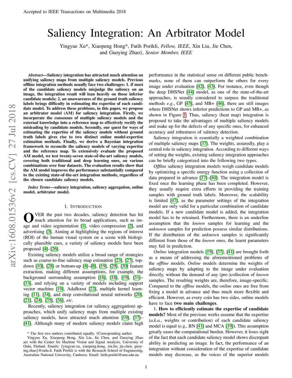 Saliency Integration: An Arbitrator Model