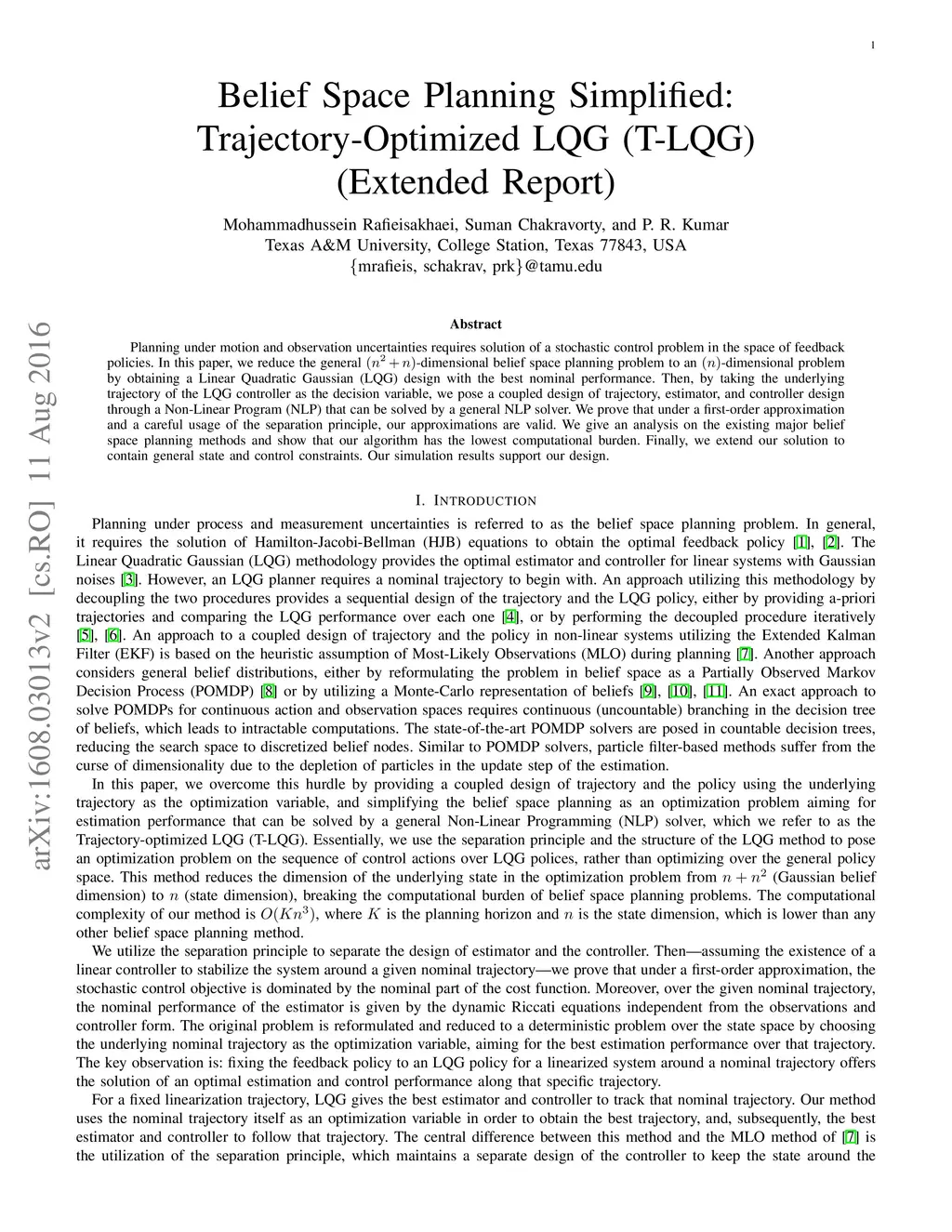 Belief Space Planning Simplified: Trajectory-Optimized LQG (T-LQG)