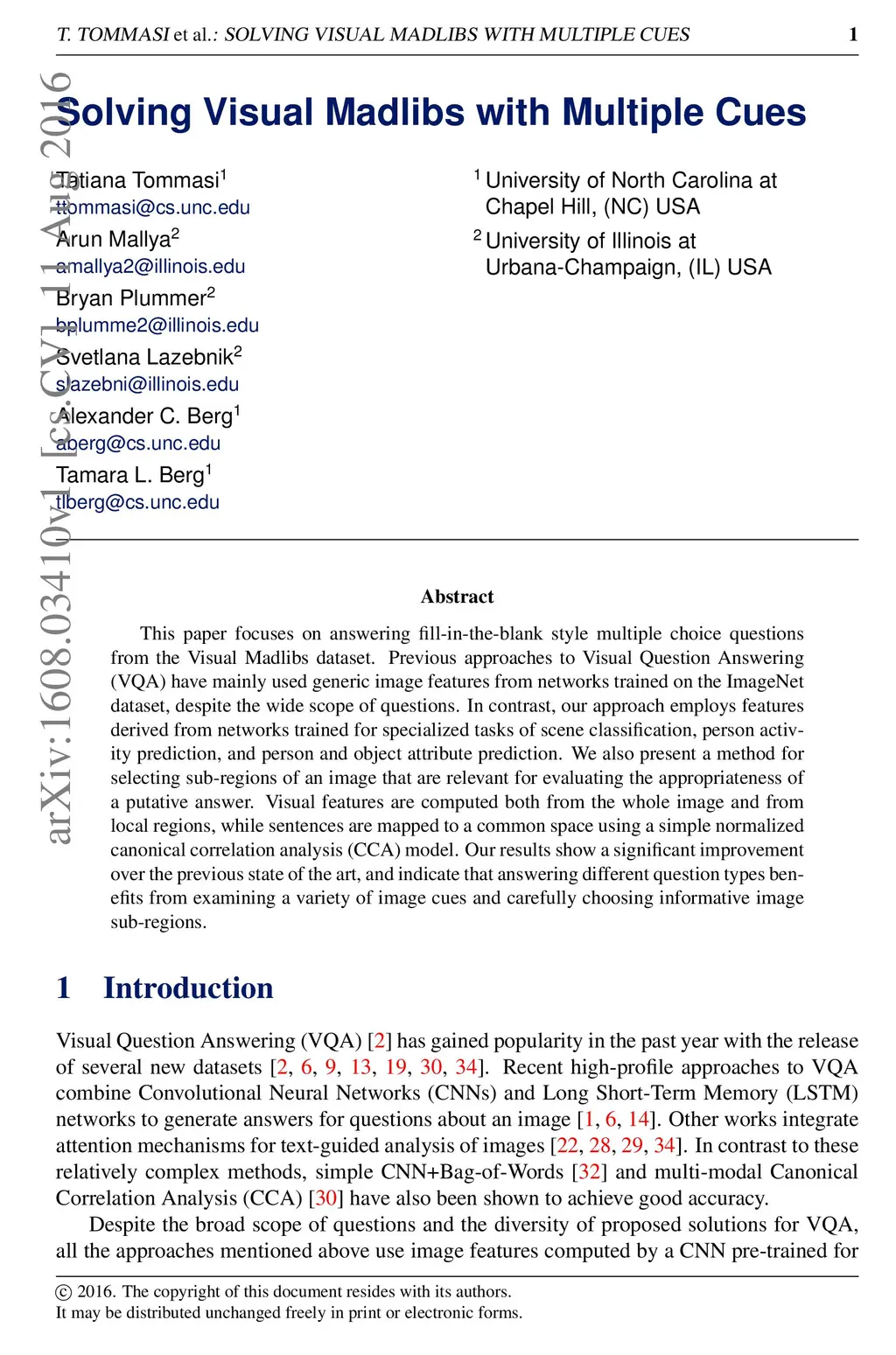 Solving Visual Madlibs with Multiple Cues