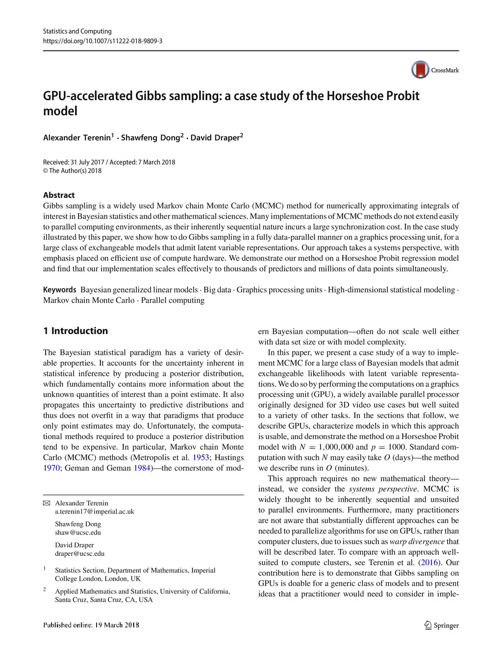 GPU-accelerated Gibbs sampling: a case study of the Horseshoe Probit