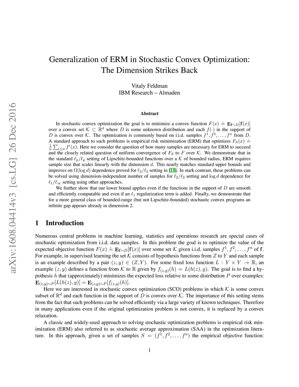 Generalization of ERM in Stochastic Convex Optimization: The Dimension