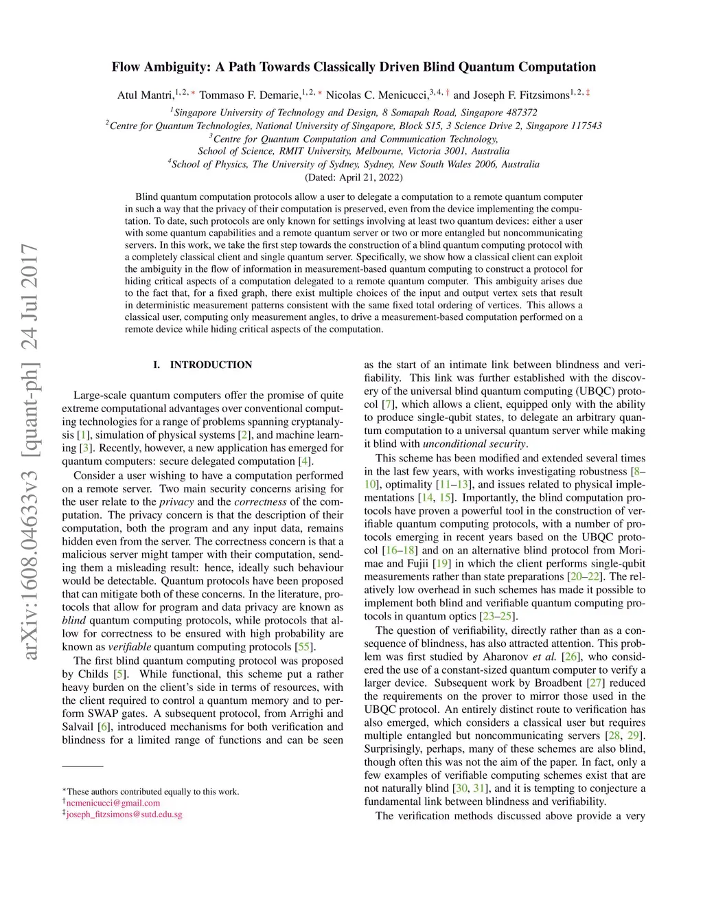 Flow Ambiguity: A Path Towards Classically Driven Blind Quantum