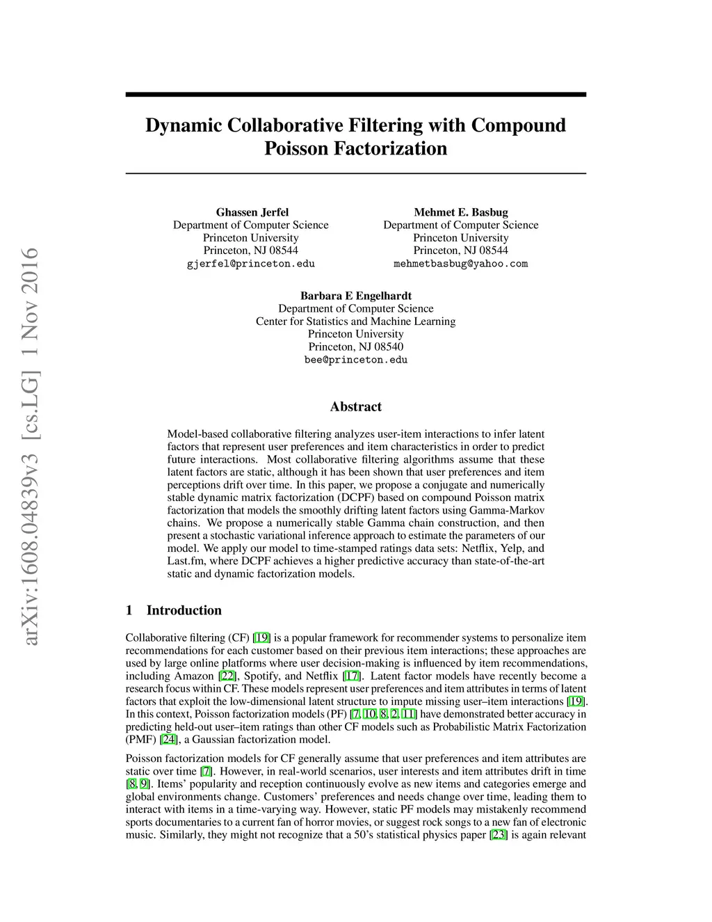 Dynamic Collaborative Filtering with Compound Poisson Factorization