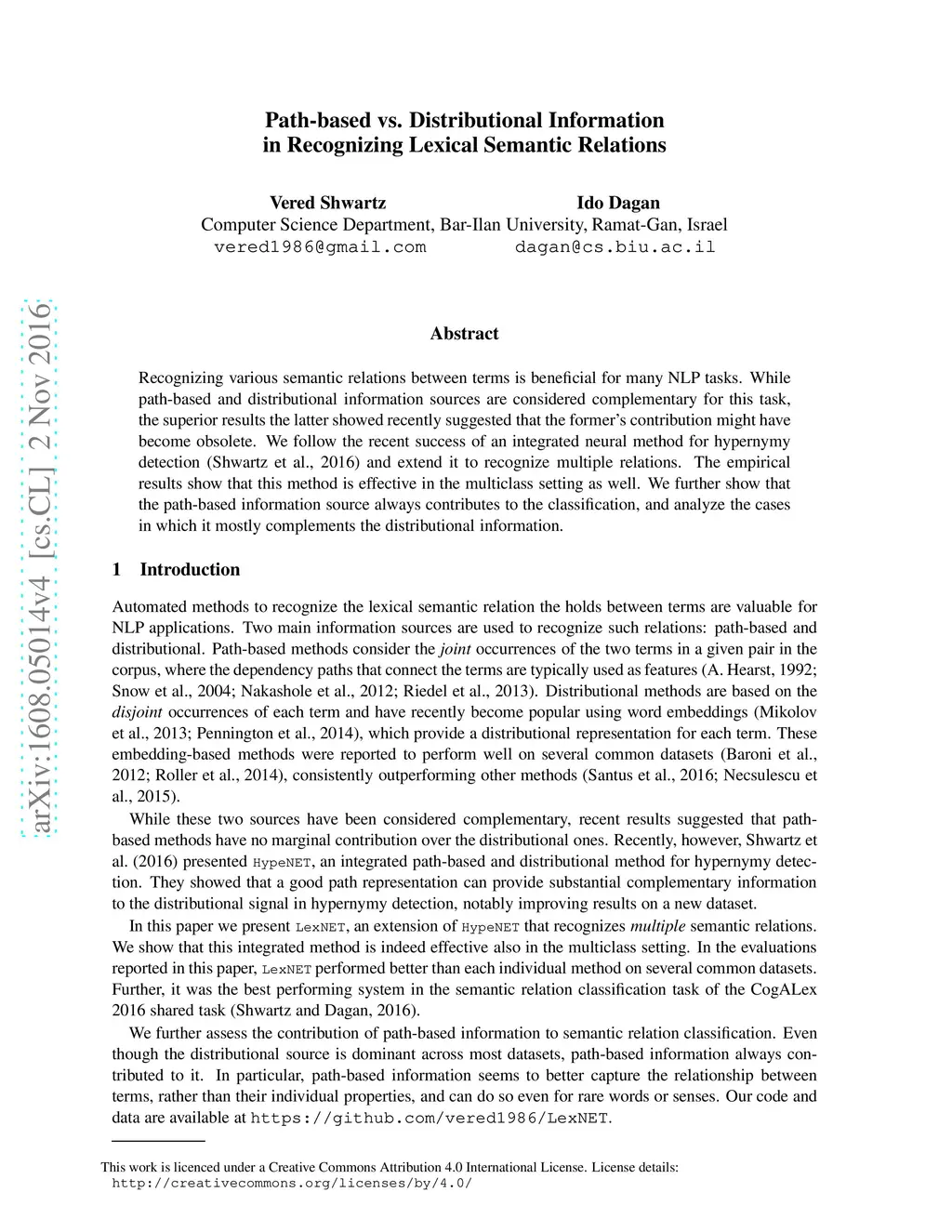 Path-based vs. Distributional Information in Recognizing Lexical