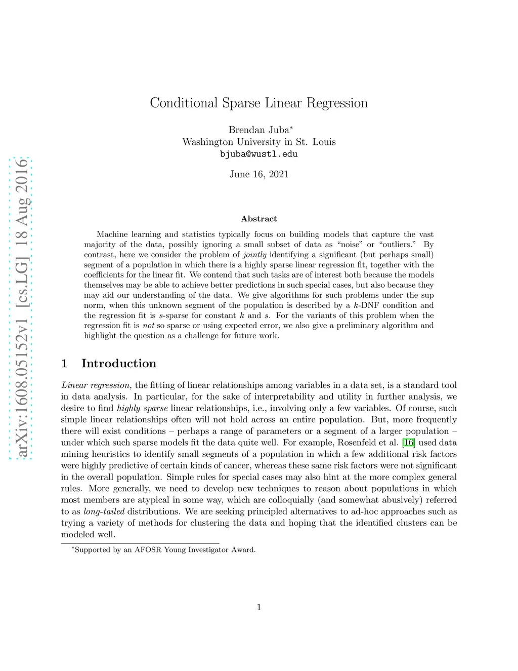 Conditional Sparse Linear Regression