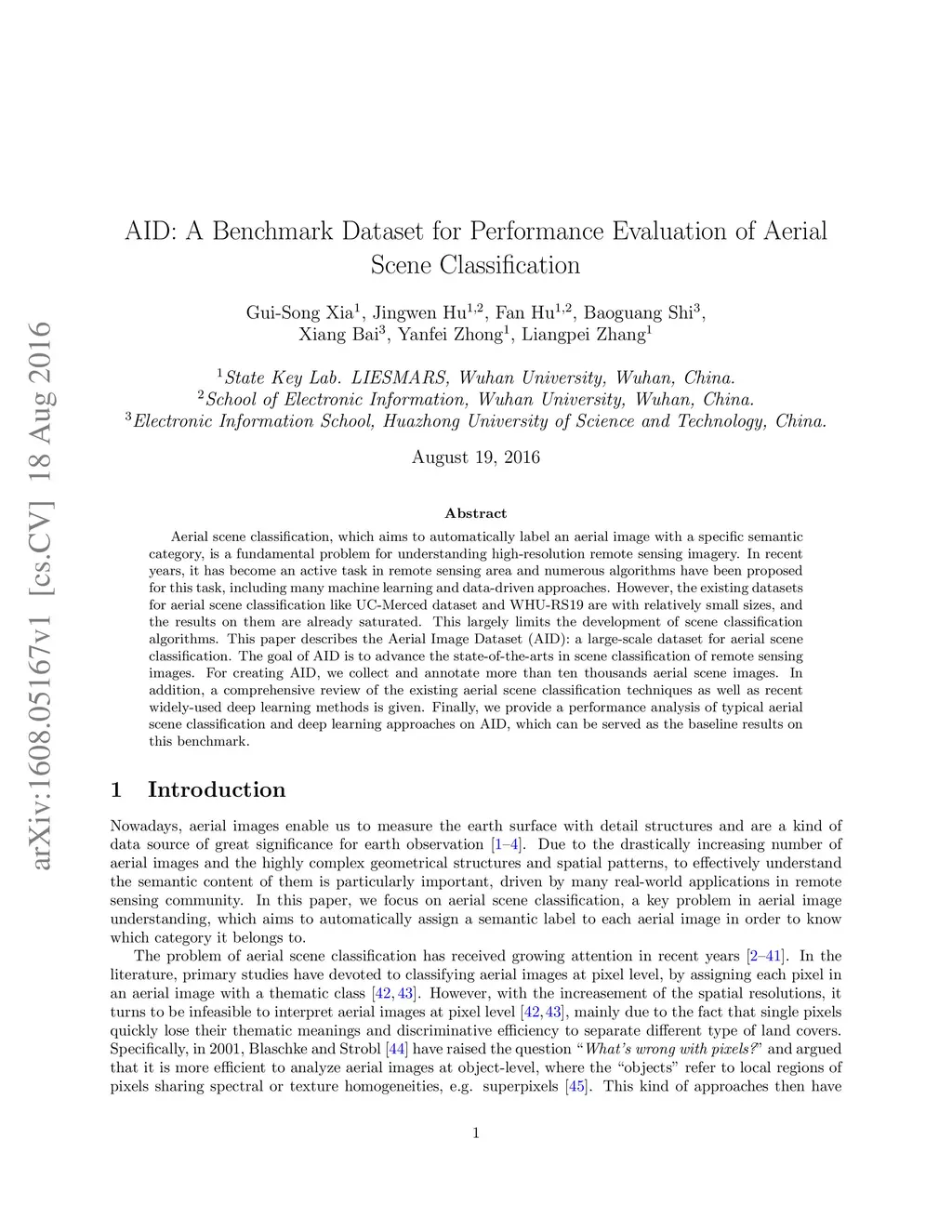 AID: A Benchmark Dataset for Performance Evaluation of Aerial Scene
