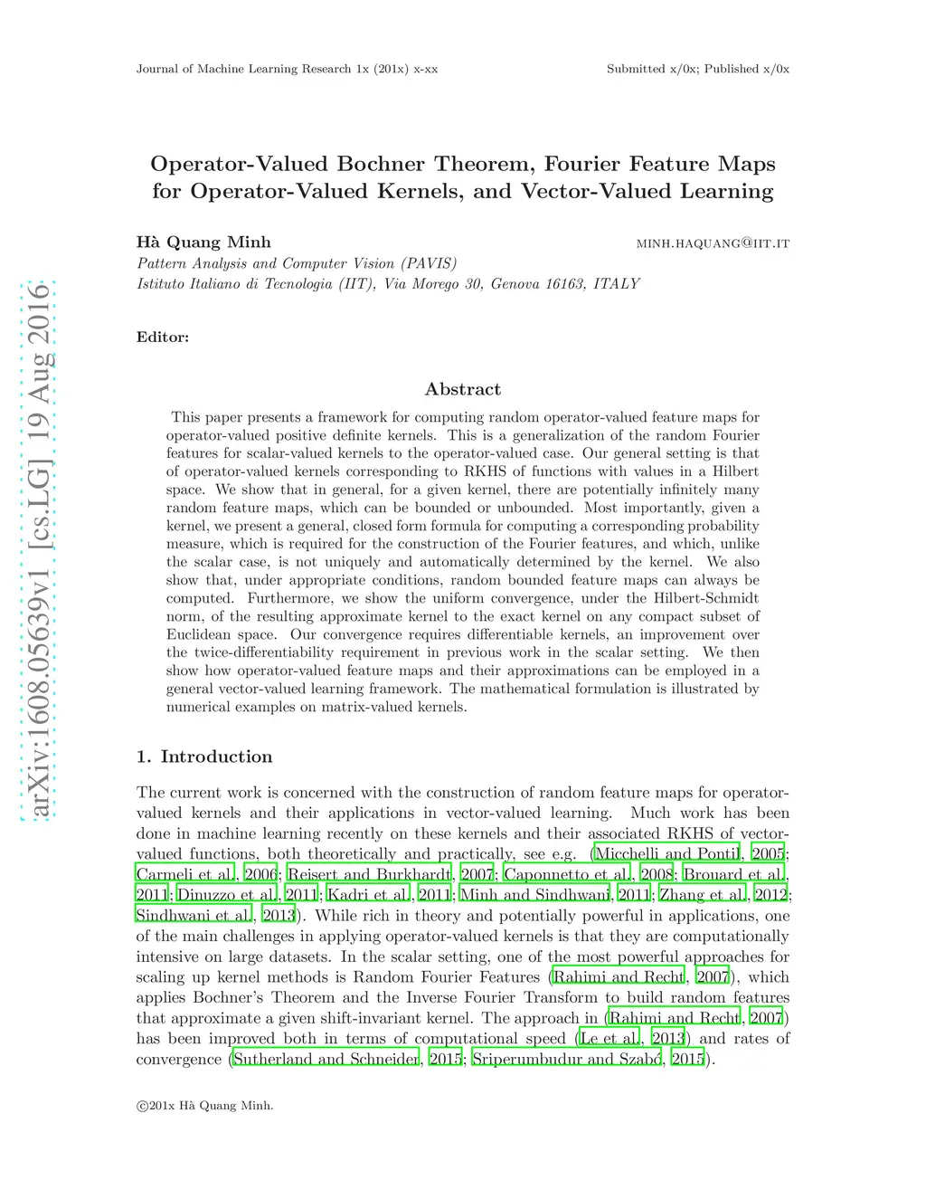 Operator-Valued Bochner Theorem, Fourier Feature Maps for