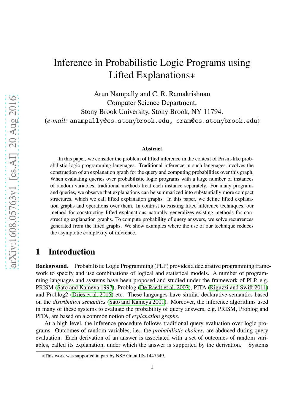 Inference in Probabilistic Logic Programs using Lifted Explanations