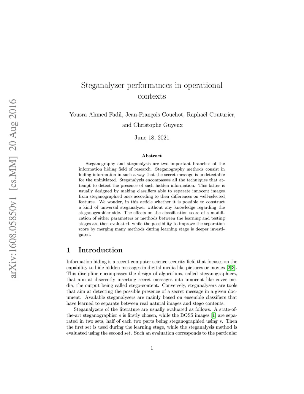 Steganalyzer performances in operational contexts