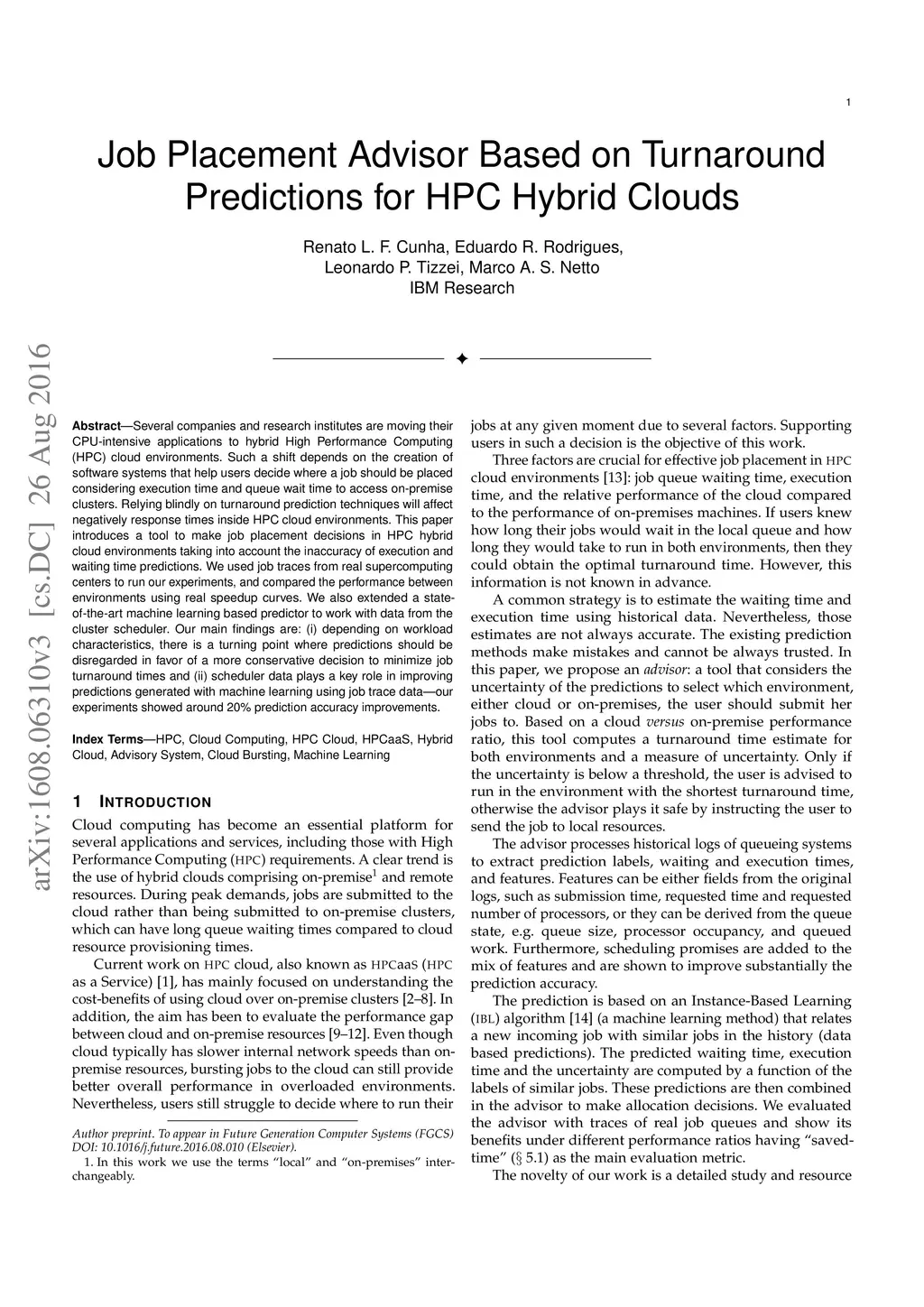 Job Placement Advisor Based on Turnaround Predictions for HPC Hybrid