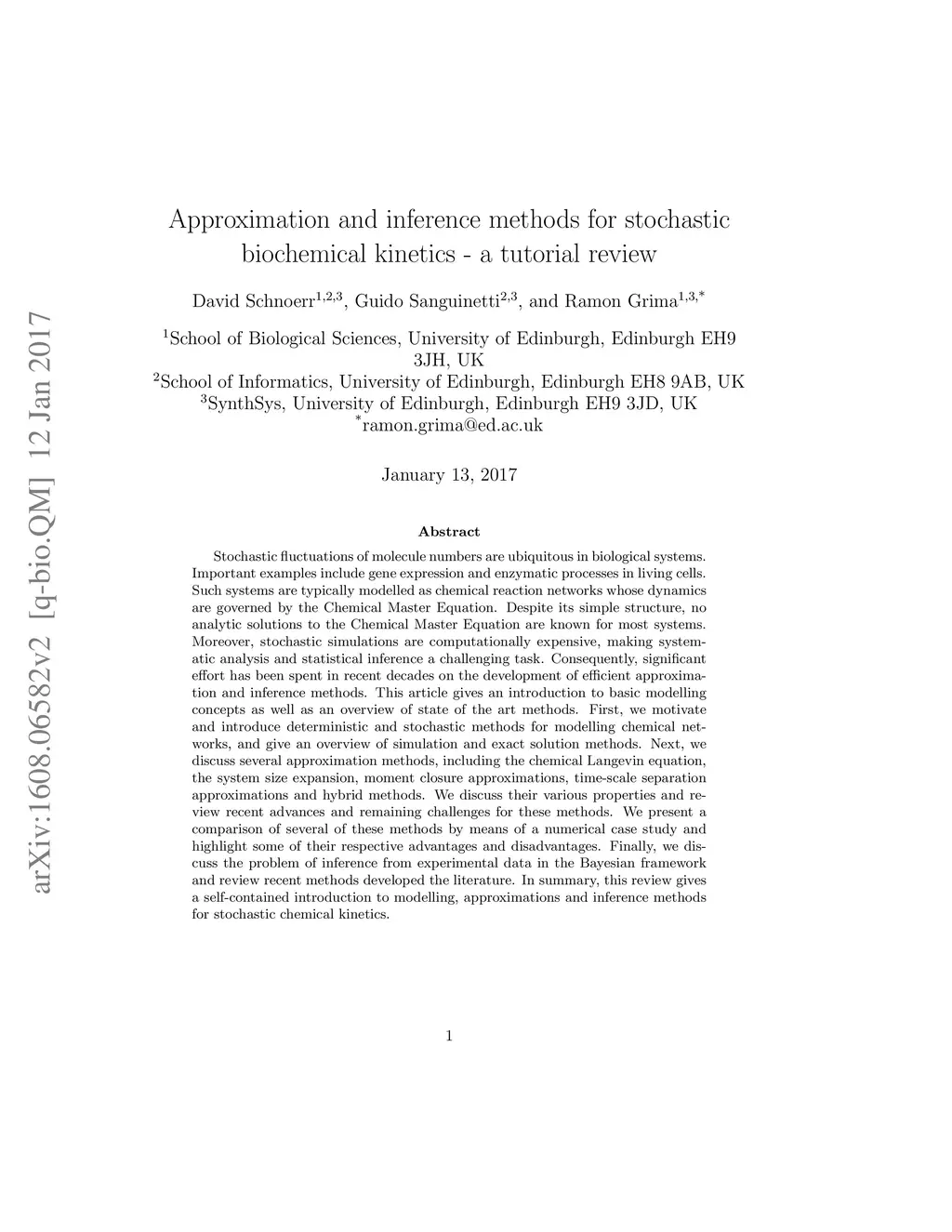 Stochastic fluctuations of molecule numbers are ubiquitous in biological systems. Important examples include gene expression and enzymatic processes in living cells. Such systems are typically modelled as chemical reaction networks whose dynamics are governed by the Chemical Master Equation. Despite its simple structure, no analytic solutions to the Chemical Master Equation are known for most systems. Moreover, stochastic simulations are computationally expensive, making systematic analysis and statistical inference a challenging task. Consequently, significant effort has been spent in recent decades on the development of efficient approximation and inference methods. This article gives an introduction to basic modelling concepts as well as an overview of state of the art methods. First, we motivate and introduce deterministic and stochastic methods for modelling chemical networks, and give an overview of simulation and exact solution methods. Next, we discuss several approximation methods, including the chemical Langevin equation, the system size expansion, moment closure approximations, time-scale separation approximations and hybrid methods. We discuss their various properties and review recent advances and remaining challenges for these methods. We present a comparison of several of these methods by means of a numerical case study and highlight some of their respective advantages and disadvantages. Finally, we discuss the problem of inference from experimental data in the Bayesian framework and review recent methods developed the literature. In summary, this review gives a self-contained introduction to modelling, approximations and inference methods for stochastic chemical kinetics.