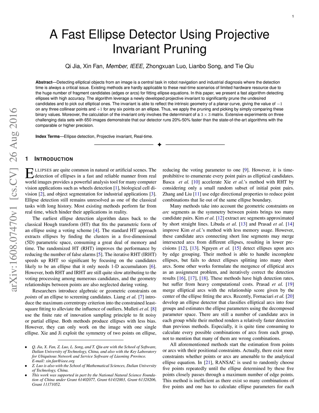 A Fast Ellipse Detector Using Projective Invariant Pruning