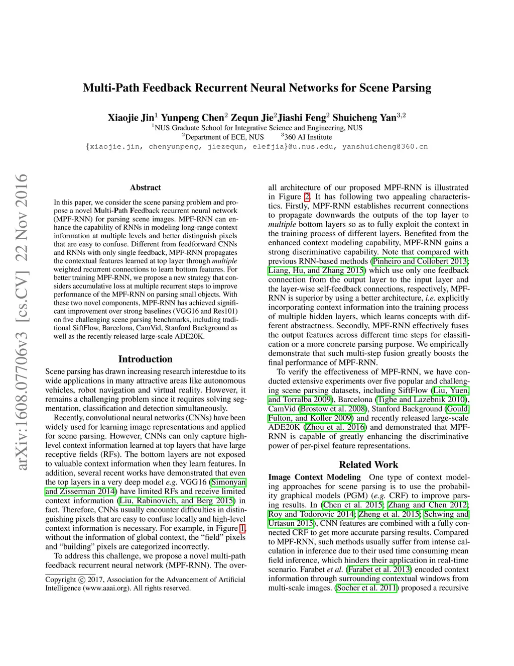Multi-Path Feedback Recurrent Neural Network for Scene Parsing