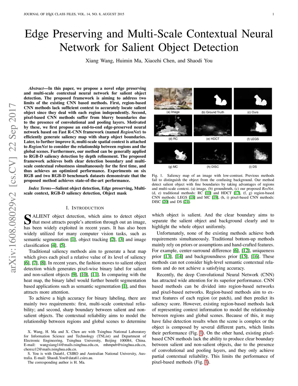 Edge Preserving and Multi-Scale Contextual Neural Network for Salient